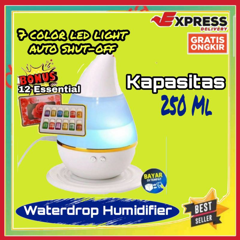 Name: Pewangi Ruangan Water Drop Ultrasonic Humidifier Diffuser 7 Color Led Lights Auto Off